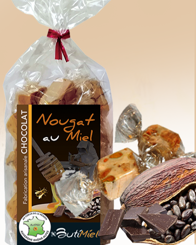 Nougat papillotes au Miel et Chocolat, sachet de 150g - Nougats au Miel